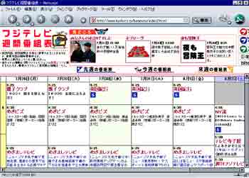 フジテレビホームページ週間番組表(Netscape7.02・800x600最大化表示時)