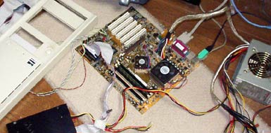 そんな状態ではまともな作業ができるわけもなく、どうしようもない状態。とりあえず原因究明のためにバラして、パソコンの最低構築条件にして様子見。↓  ケースから出すこともないんじゃない?というツッコミはスルーで。状況から(BIOSすらまともに立ち上がらない)考えて、こうしたところでたぶん解決しないことはわかっていたのでね…。