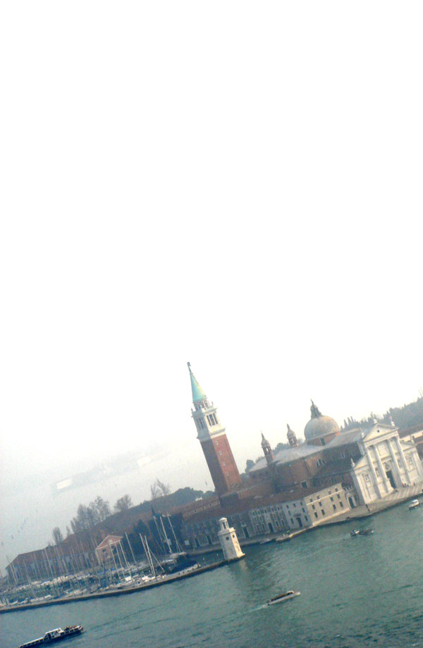 天気があまりよくなかったので、サンジョルジョ・マッジョーレ教会があるサンジョルジョ・マッジョーレ島までしかちゃんと見えていませんが、天気がよければ奥の島(リド島かな?)までちゃんと見えそうですね。